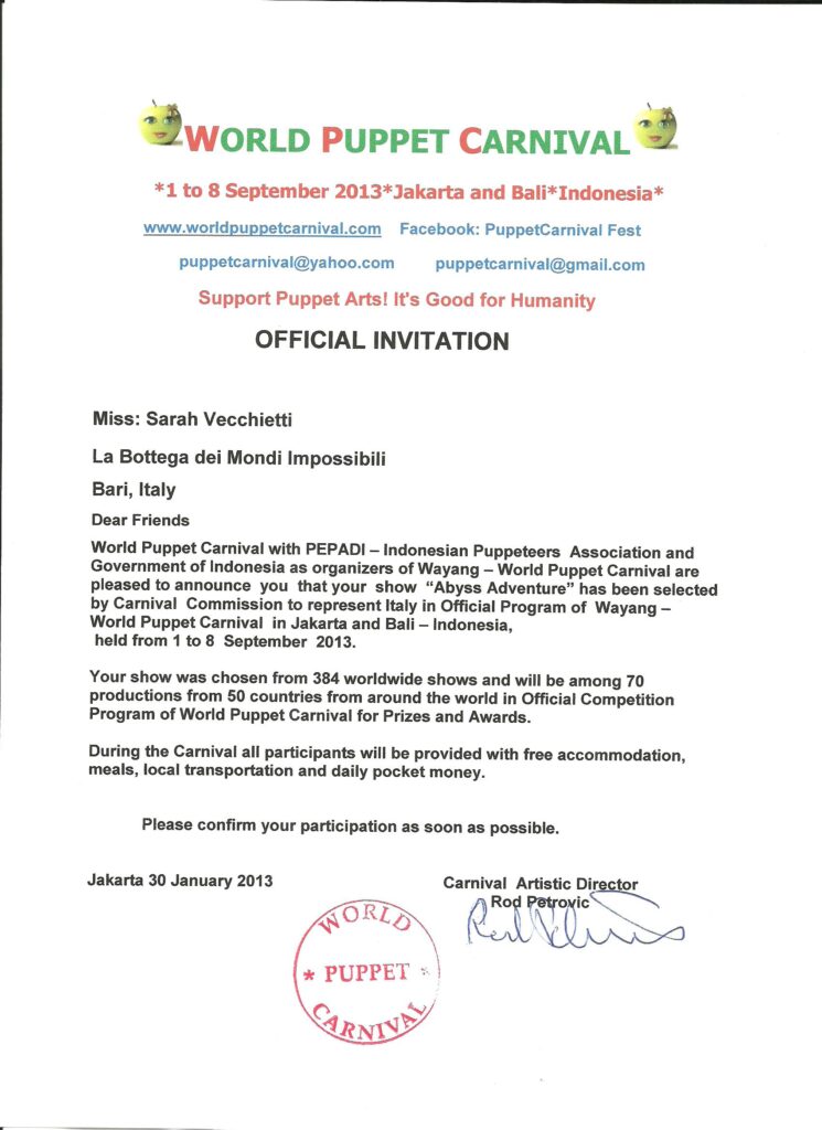 Sarah Vecchietti è esperta in teatro di figura. Realizza spettacoli in qualità di attrice-mimo, regista e scenografa, specializzandosi nella realizzazione di maschere, protesi e oggetti scenici per il teatro e nella tecnica visionaria del teatro nero (black light theatre), che si avvale del connubio tra oggetti fluorescenti e lampada Wood (a raggi UV).Nel 2013 ha conseguito la laurea magistrale in Saperi e tecniche dello spettacolo teatrale.