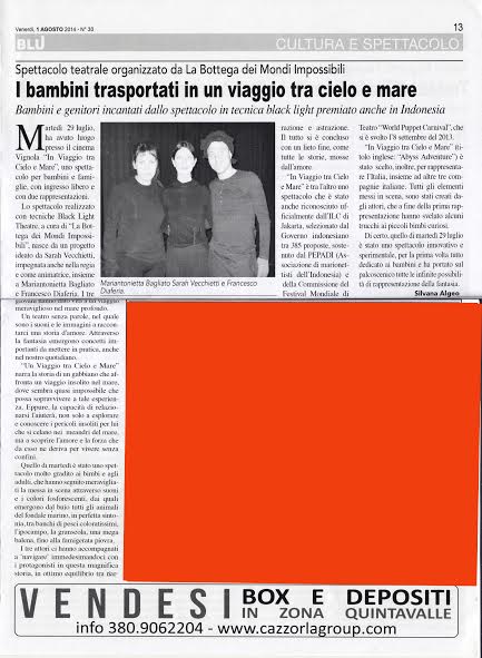 Ha partecipato a numerosi spettacoli in qualità di attrice e mimo, realizzando in qualità di regista, attrice e scenografa gli spettacoli di teatro di figura. Laika: l’A.vventura I.ncredibile di un K.ane A.stronauta e In viaggio tra cielo e mare, presentati in diversi teatri e festival internazionali, tra cui: festival mondiale di teatro di figura Wayang – World Puppet Carnival 2013 a Jakarta, Zoom festival a Scandicci, Teatro Era a Pontedera, teatro Furio Camillo a Roma e nel territorio pugliese: Teatro Verdi a Brindisi. Granteatrino Casa di Pulcinella a Bari, notte bianca Giocalaluna a Bari; teatro Vignola a Polignano, Castello di Sannicandro, Fringe Festival ad Andria.